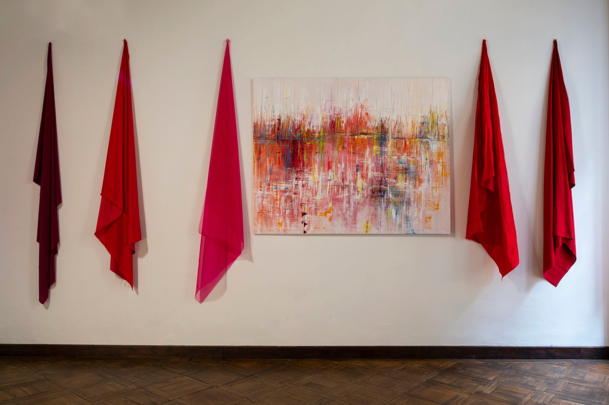 Acrilico e seta Georgette su tela