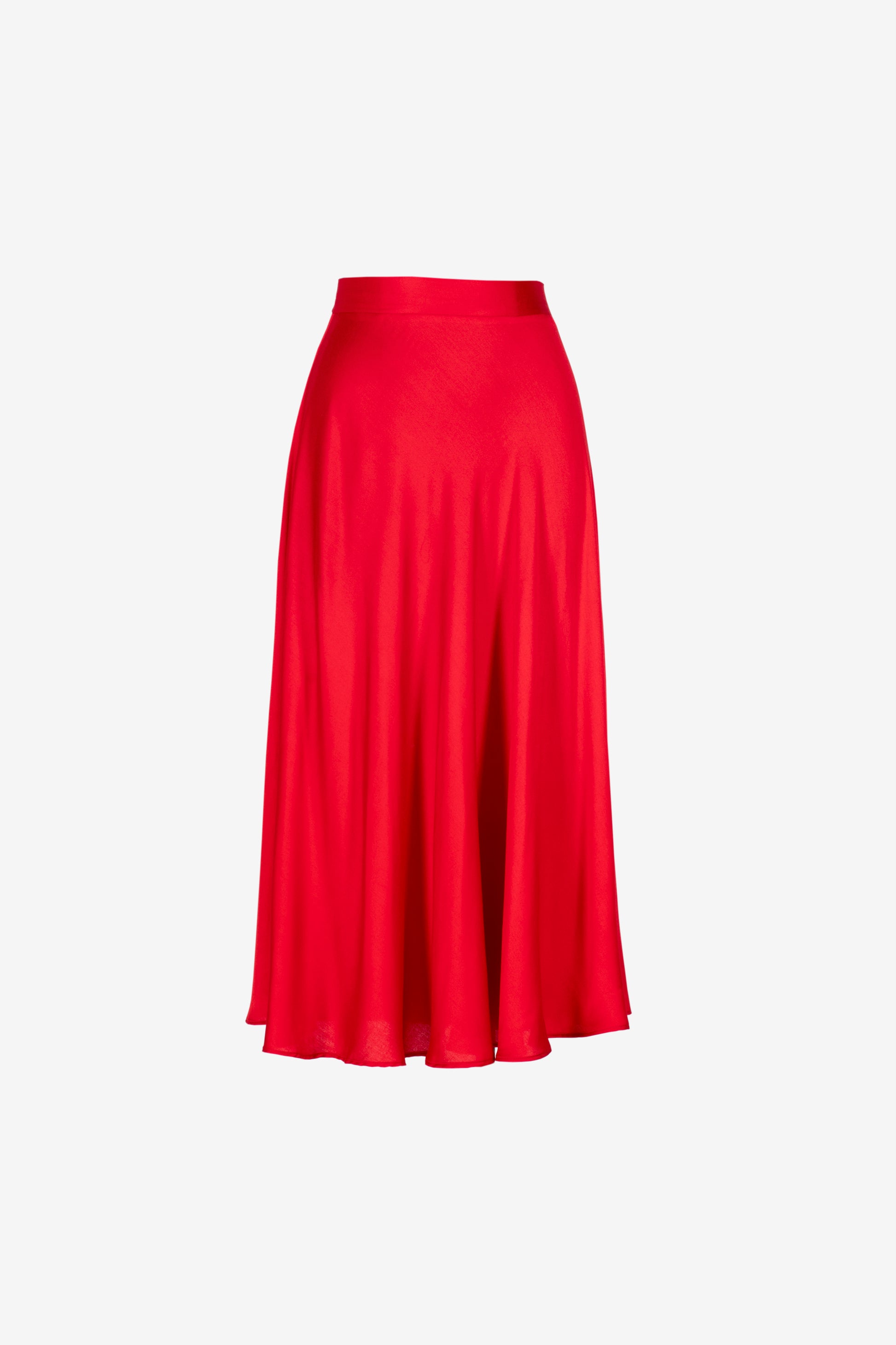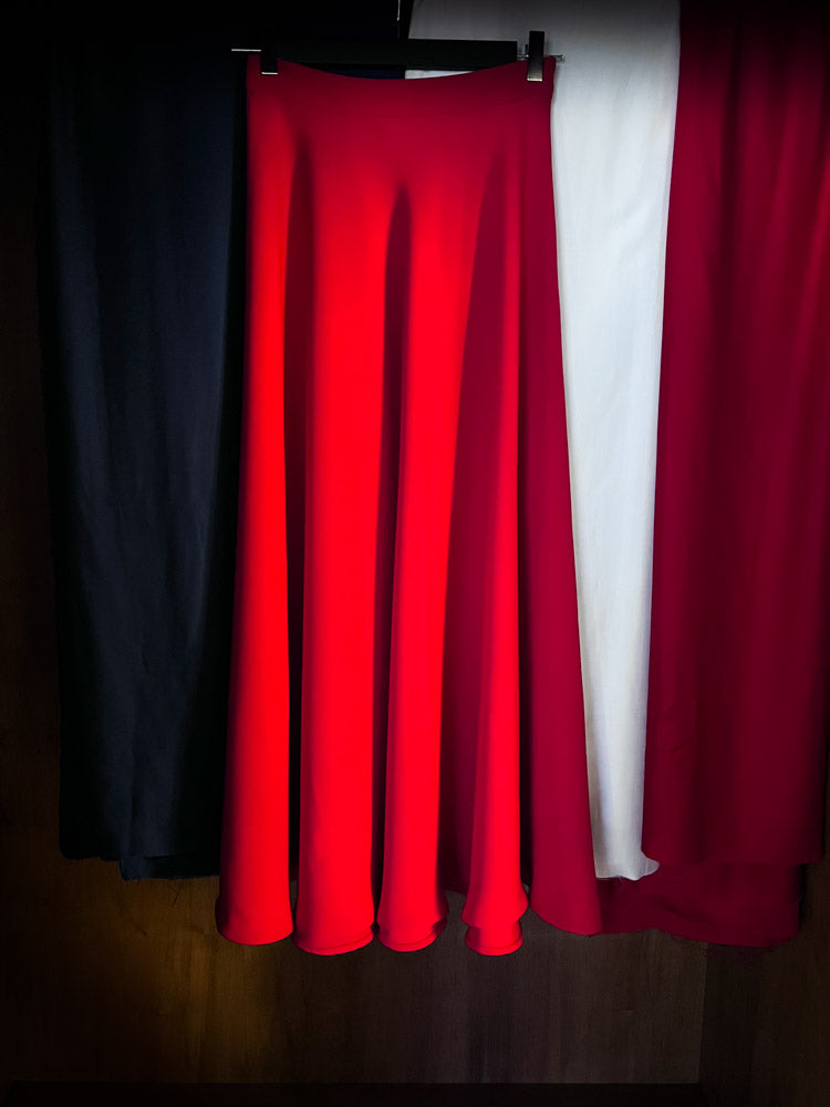 Gonna midi a routa Moiré, in seta rossa.