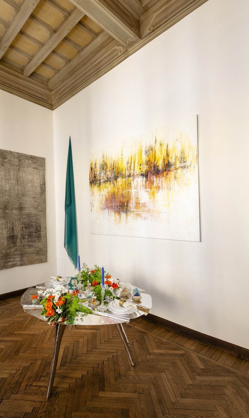 Quest'opera è un'esplorazione artistica che permette a Tita di interpretare il tema degli orizzonti cittadini, delle metropoli al tramonto con luci, bagliori e riflessi, attraverso lo strumento del colore combinato con la seta.