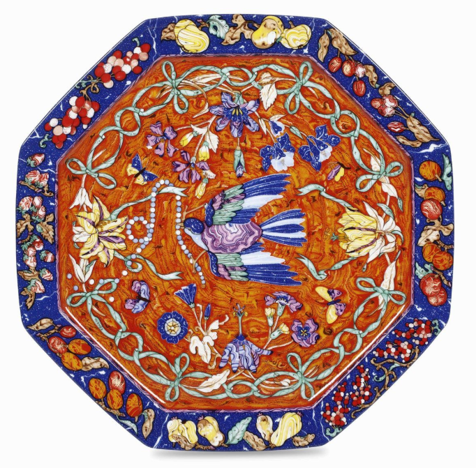 Porcellana Marqueterie de Pierres d'Orient et d'Occident Hermès Porcelaine Paris in simbolo grafico Hermès Paris France”, in blu. Diametro cm 34,4
